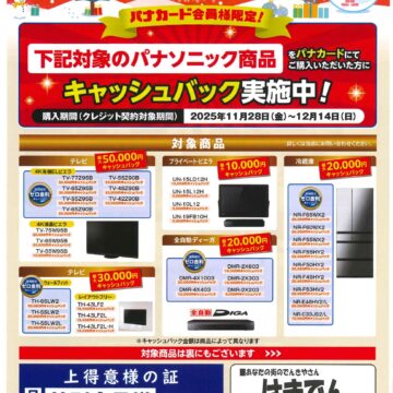 ✅ パナカードで対象商品をご購入 → キャッシュバック!